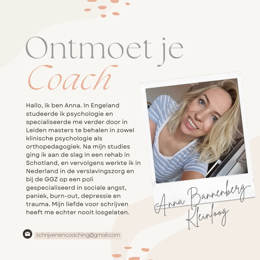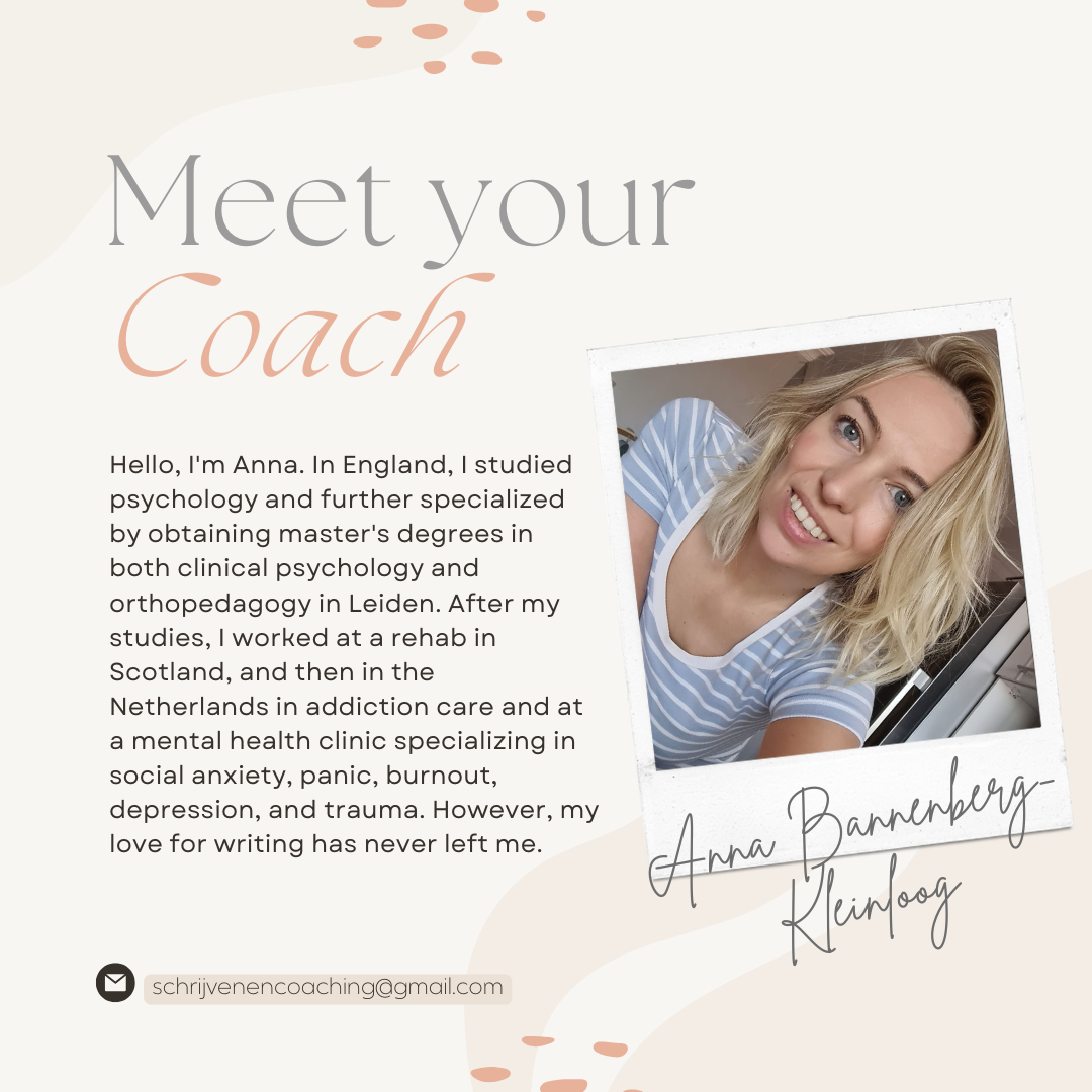 Elke individuele cursus bestaat uit tien online bijeenkomsten van een uur en kost 500 euro. Het is ook mogelijk om losse lessen te boeken voor 55 euro per les. Aanmelden: schrijvenencoaching@gmail.com